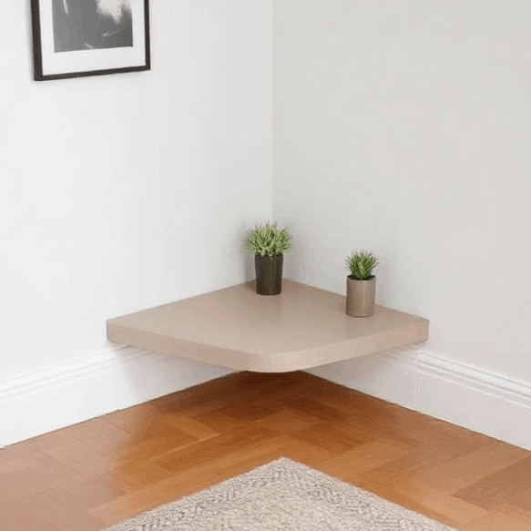 This platform fits neatly into corners to save space. Its angled shape supports stable placement without occupying central areas. It is useful for rooms that require efficient layout solutions. The surface is designed to resist wear over time. A discreet addition to structured interiors.