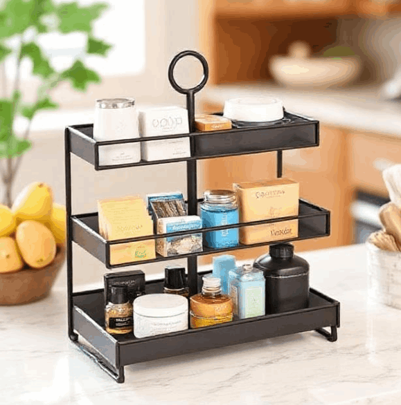 This stand provides two-tier support for organizing small items. Both levels are spaced for convenient visibility. Its balanced construction helps keep everything in place. The stand works well on countertops or entryway tables. A practical option for maintaining orderly surfaces.