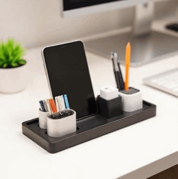 This holder is designed for stable placement of small accessories. Its structure keeps items in an accessible position. It fits easily on desks and shelves of different sizes. The surface remains smooth and easy to clean. Ideal for maintaining tidy work areas.